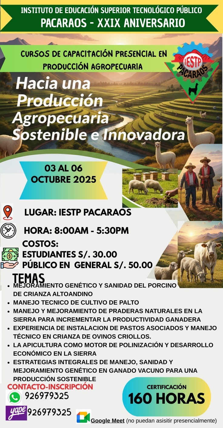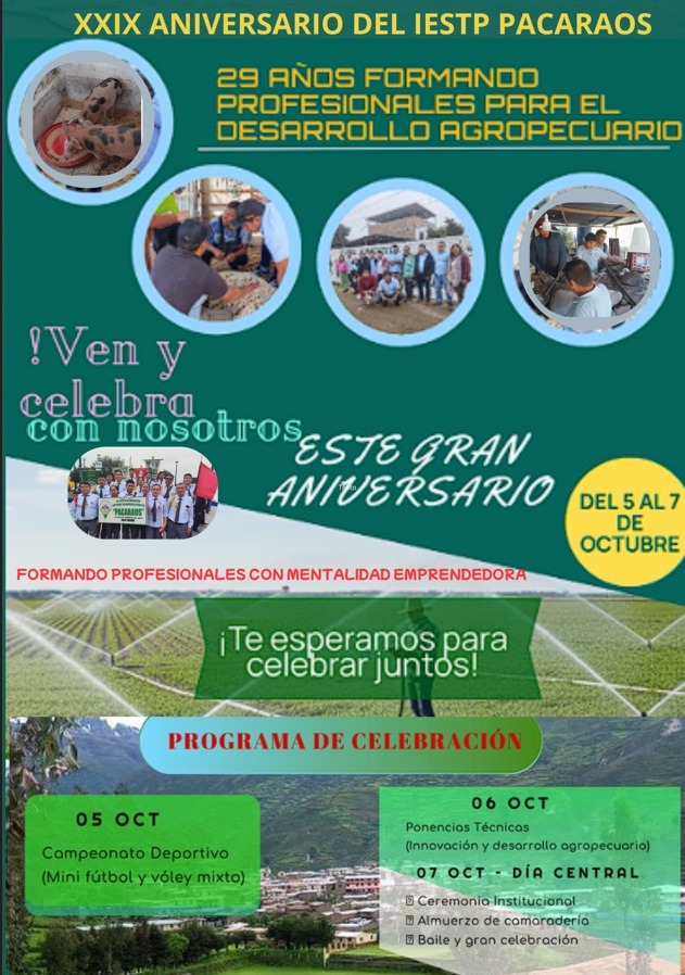 Apostando por la calidad educativa en HuaralEl IESTP Pacaraos formando los lÃderes del mañanaConoce más aquÃPostula y se un pionero del futuroParticipa en nuestro próximo proceso de admisiónVer más